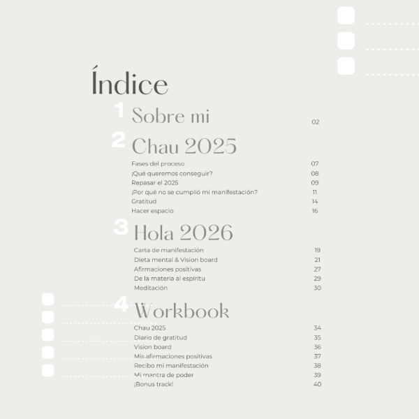 Es una guía práctica y profunda para que diseñes tu 2026 desde adentro hacia afuera: tu energía, tus decisiones, tus emociones, tus deseos, tu foco, tu dirección.